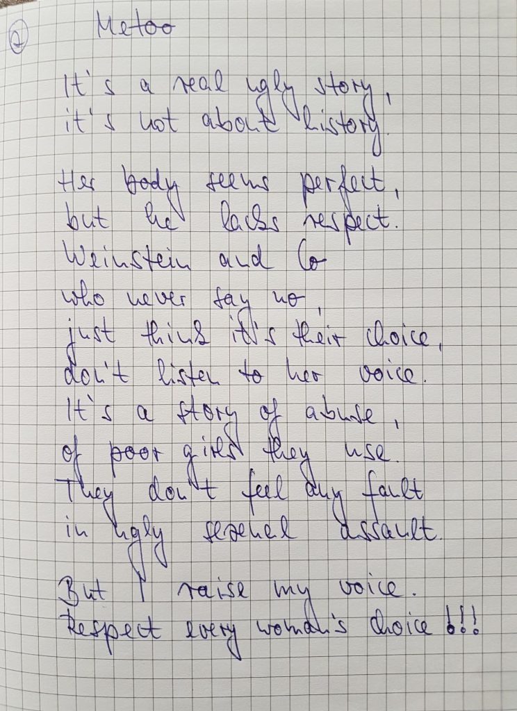 It’s a real ugly story, it’s not about history. Her body seems perfect, but he lacks respect. Weinstein and Co who never say no, just think it’s their choice, don’t listen to her voice. It’s a story of abuse, of poor girls they use. They don’t feel any fault in ugly sexual assault. […]
